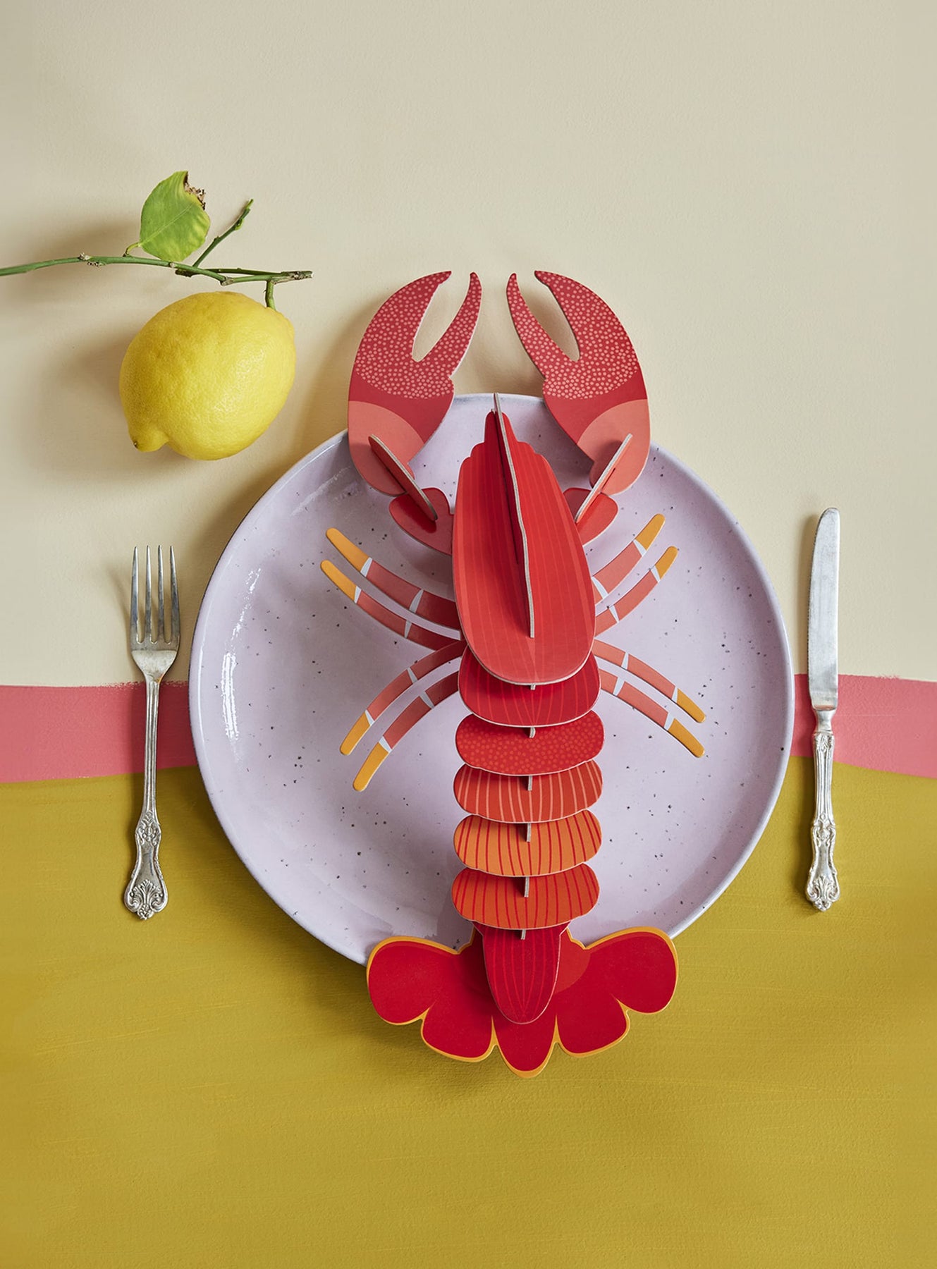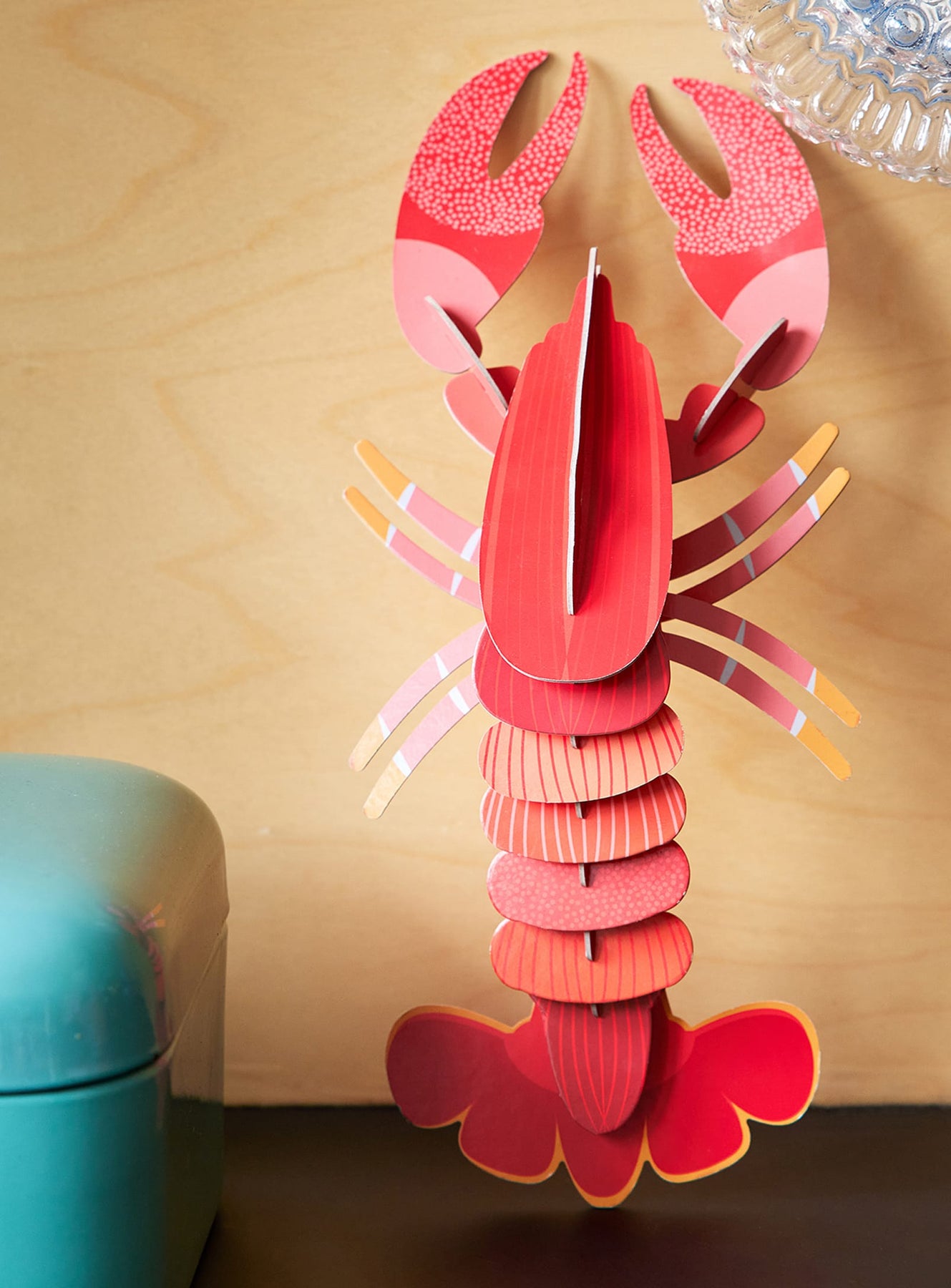 Crafted with vegetable-based inks on recycled cardboard, this artwork reflects Studio ROOF’s passion for sustainability and creativity. Arriving flat-packed for easy assembly, the Lobster measures 17 × 10 × 39 cm (6.7″ × 3.9″ × 15.3″) when built, a striking piece that brings the ocean’s color and energy into your home. Perfect for eco-conscious Canadian interiors, it’s a creative homage to nature’s underwater beauty.