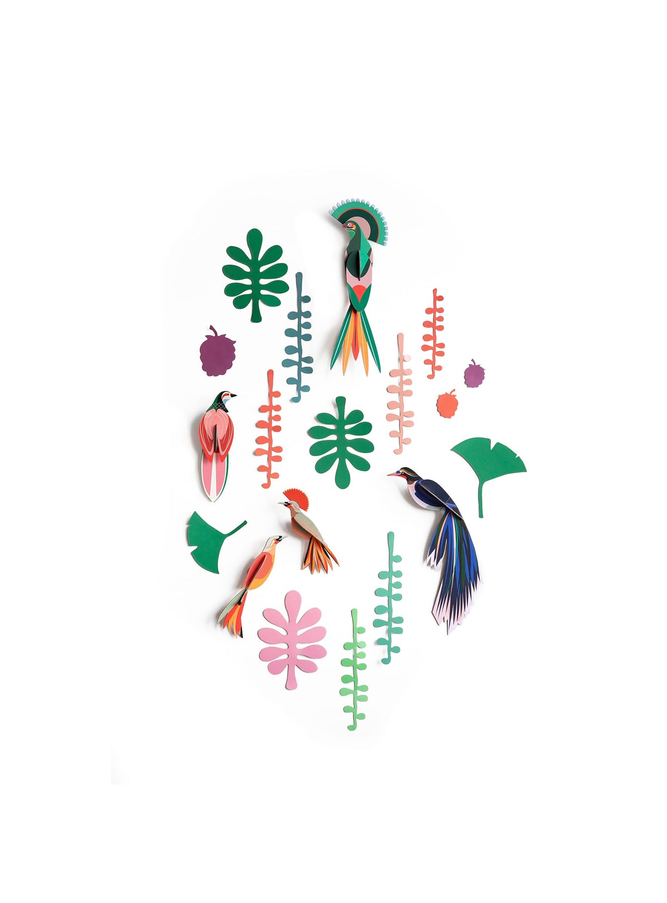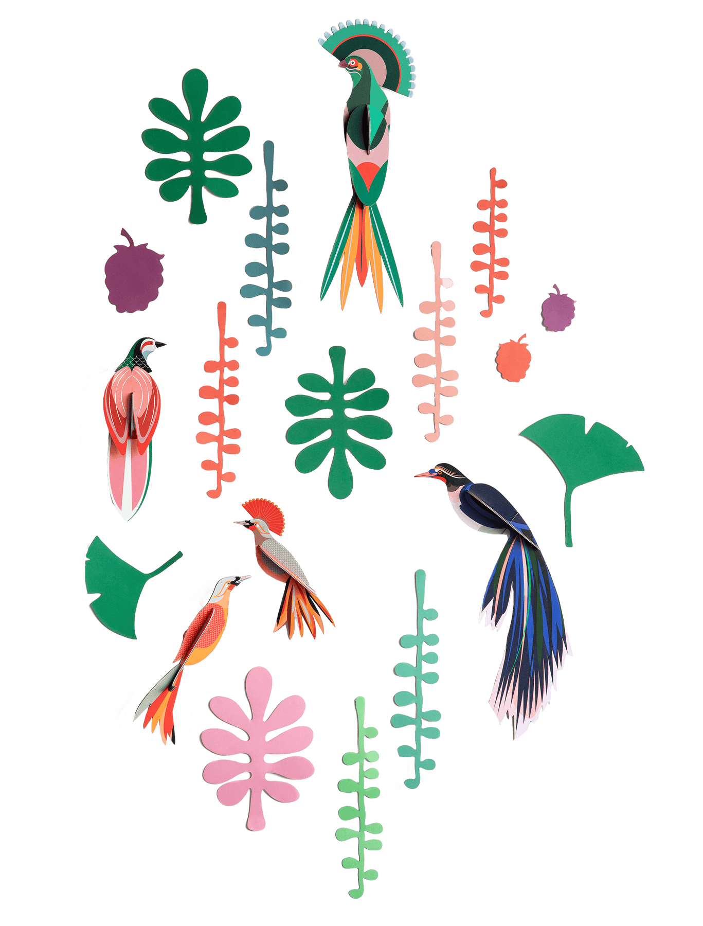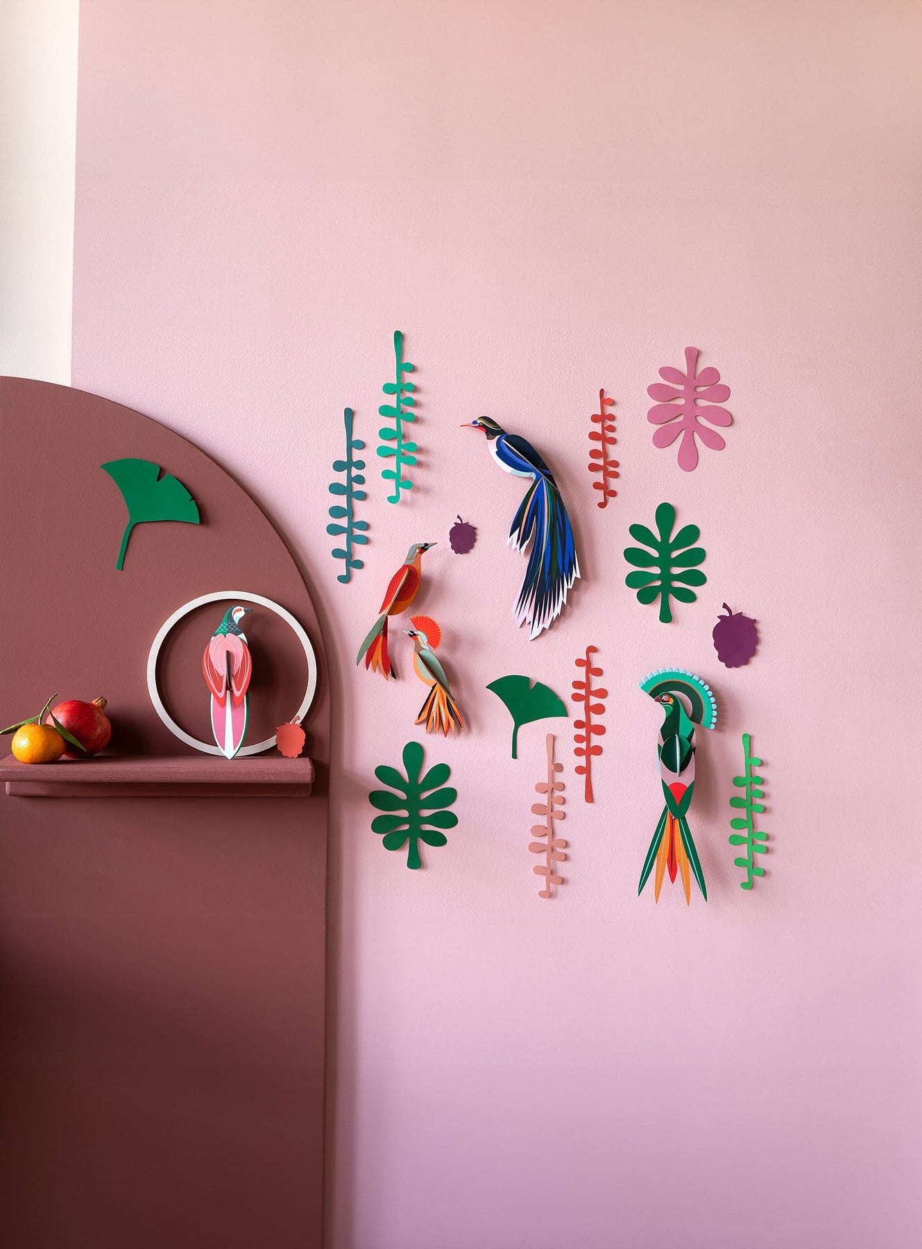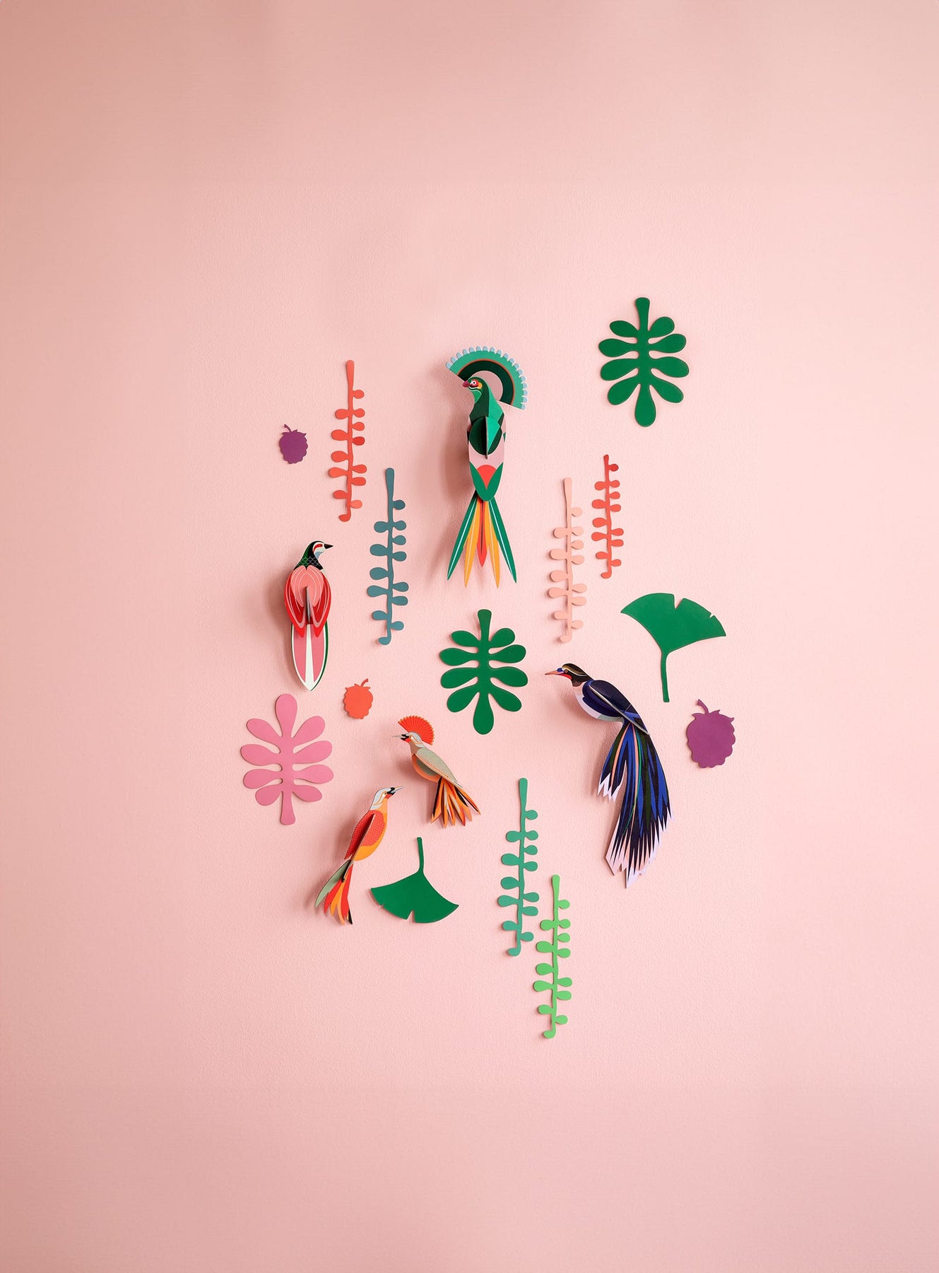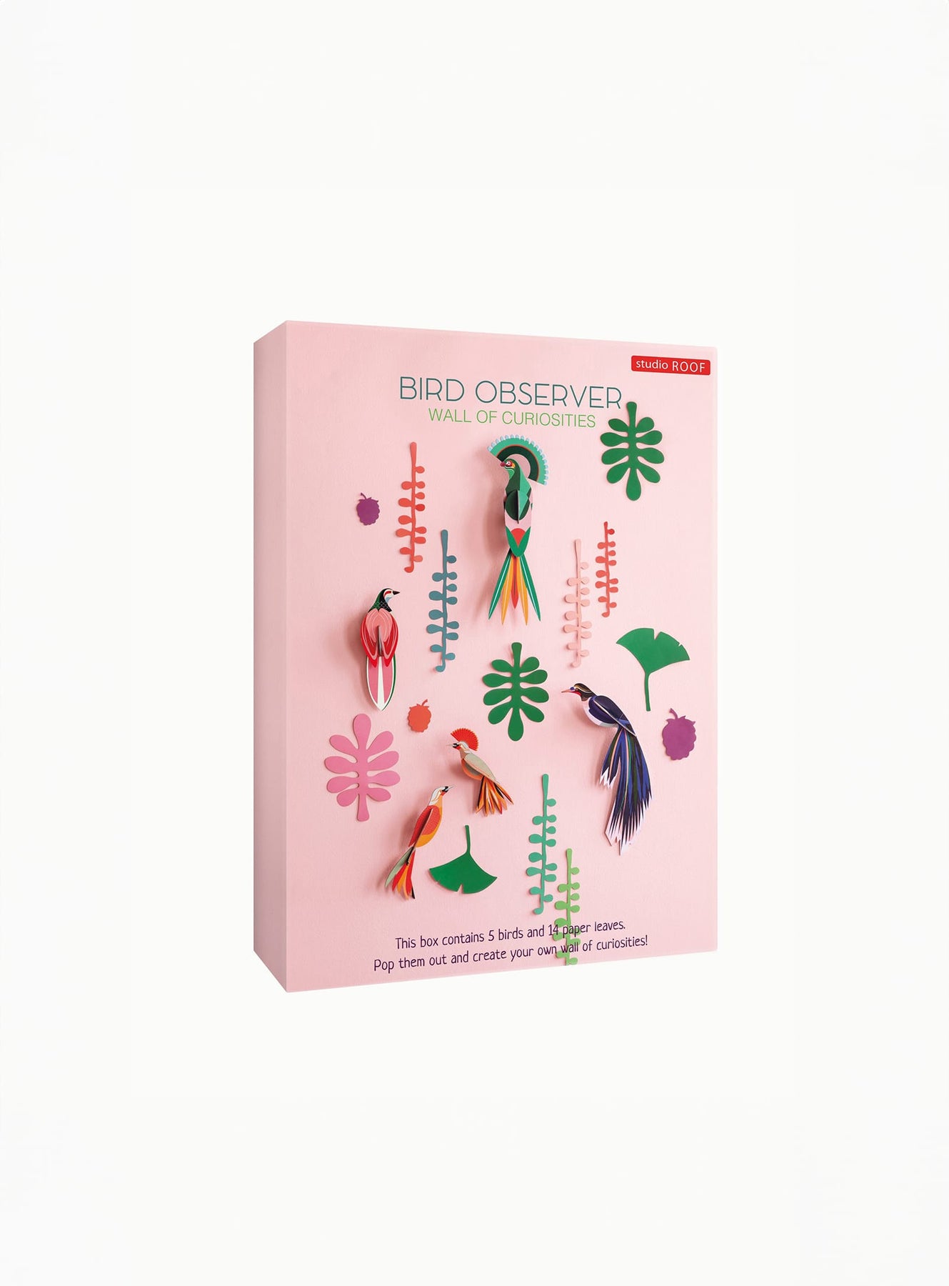 The Bird Observer by Studio ROOF invites you to create your own lush world of color and life. This enchanting 3D wall art set includes five beautifully designed birds and fourteen vibrant leaves that transform your walls into a tropical paradise. Each piece captures the playful essence of nature, from fluttering wings to lush foliage, inspiring curiosity and joy in every detail.