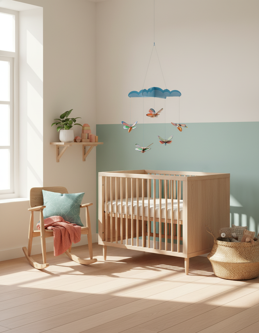 A poetic mobile that flutters with color and imagination, perfect for dreamy little spaces.