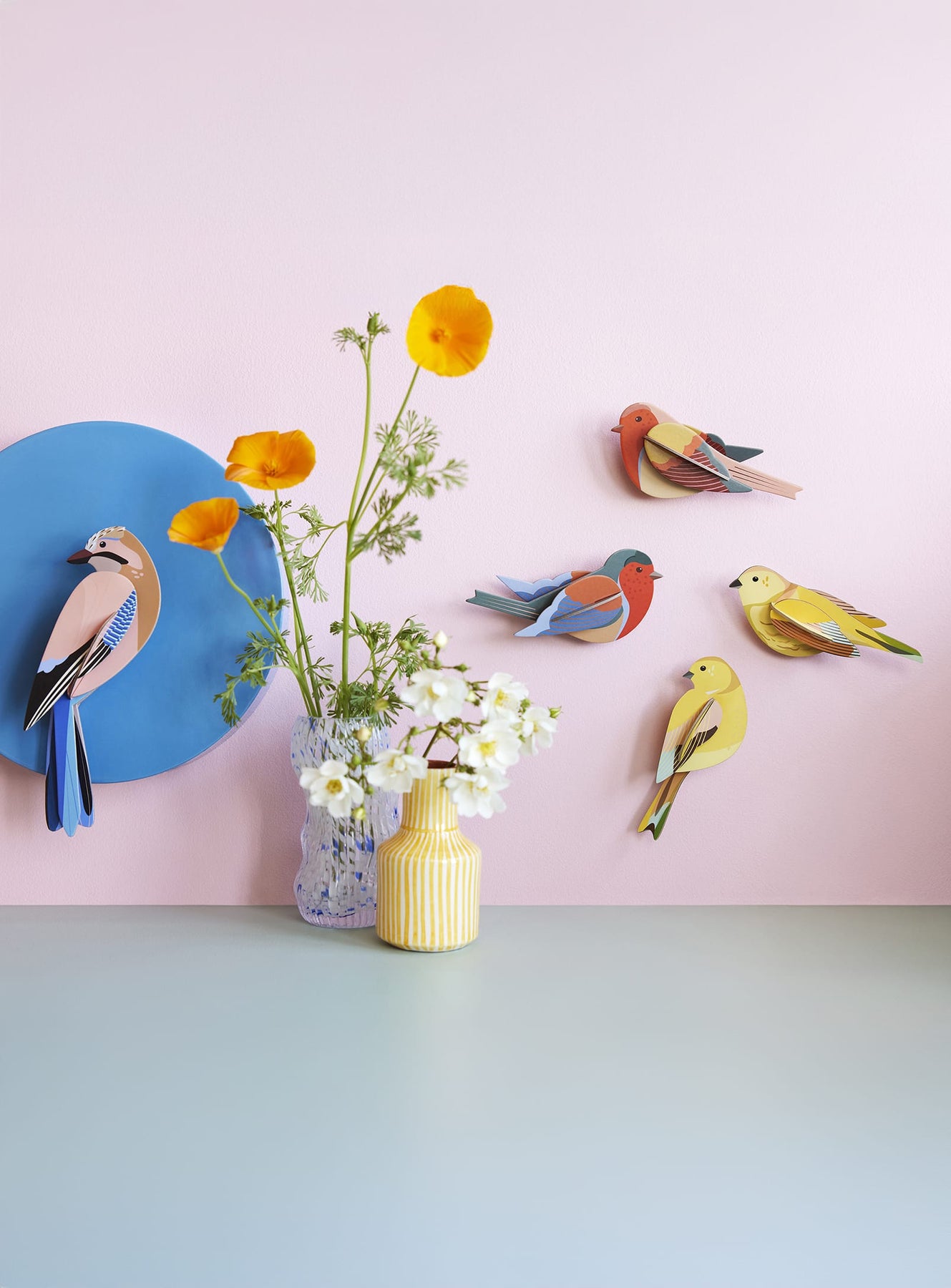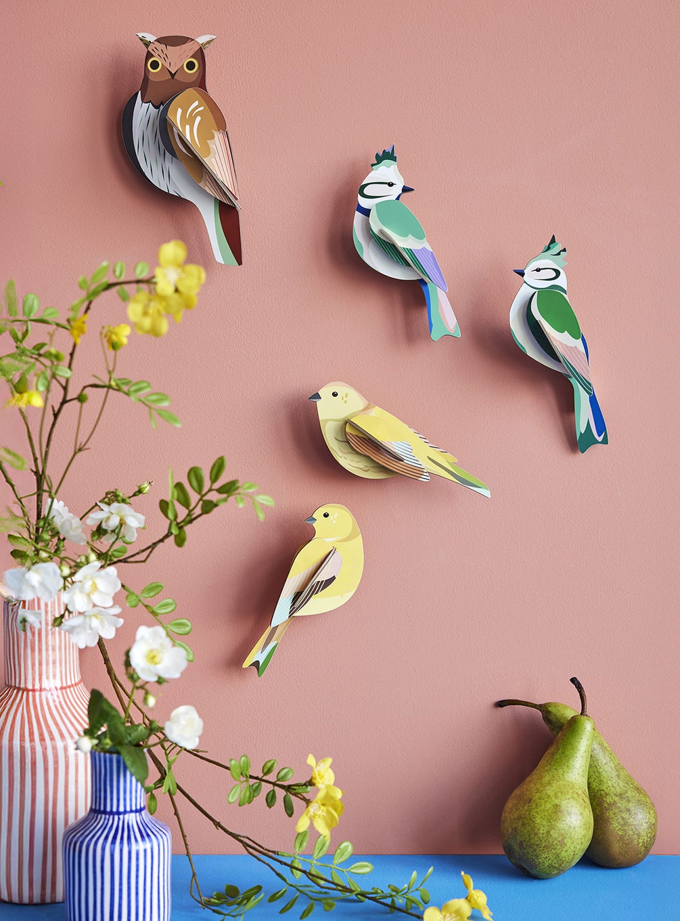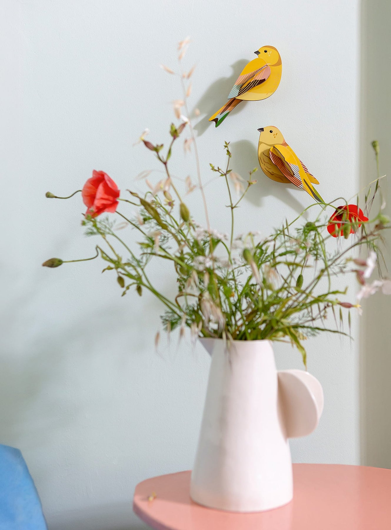 The Citrinella Pair by Studio ROOF captures the lively charm of garden birds that brighten every day. Instead of fluttering away, these beautifully designed cardboard birds can stay perched on your wall or shelf, adding a splash of color and creativity to your décor.