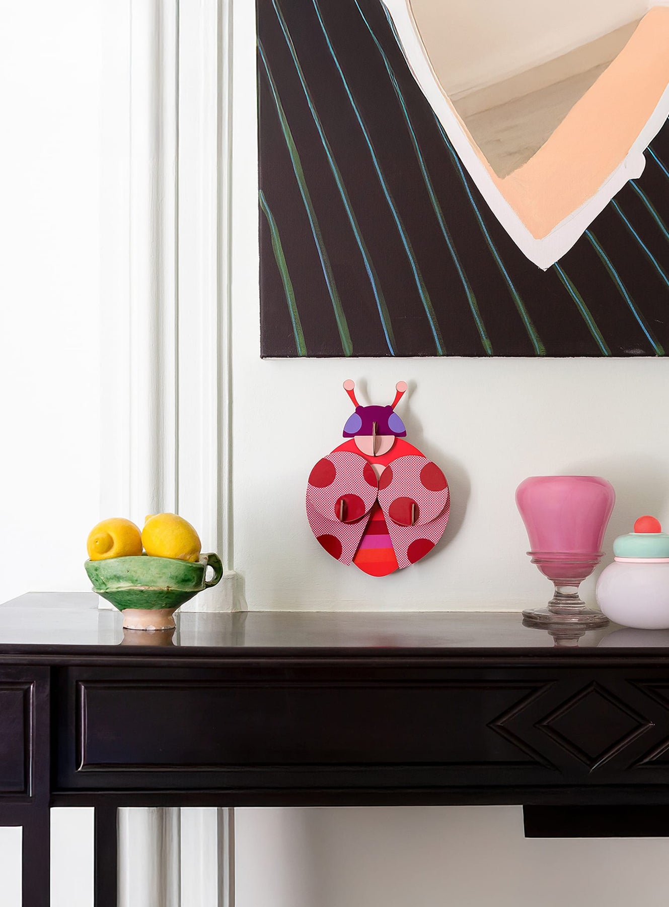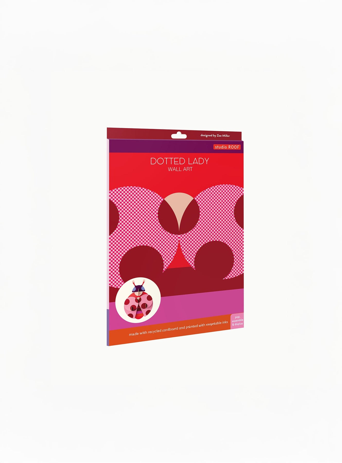 The Dotted Lady by Studio ROOF is part of a special capsule collaboration with British artist Zoe Miller, known for her bold and playful visual style. Reimagining Studio ROOF’s nature-inspired aesthetic, this 3D cardboard art piece bursts with graphic energy and layered textile-inspired patterns, making it an artistic statement for any space.