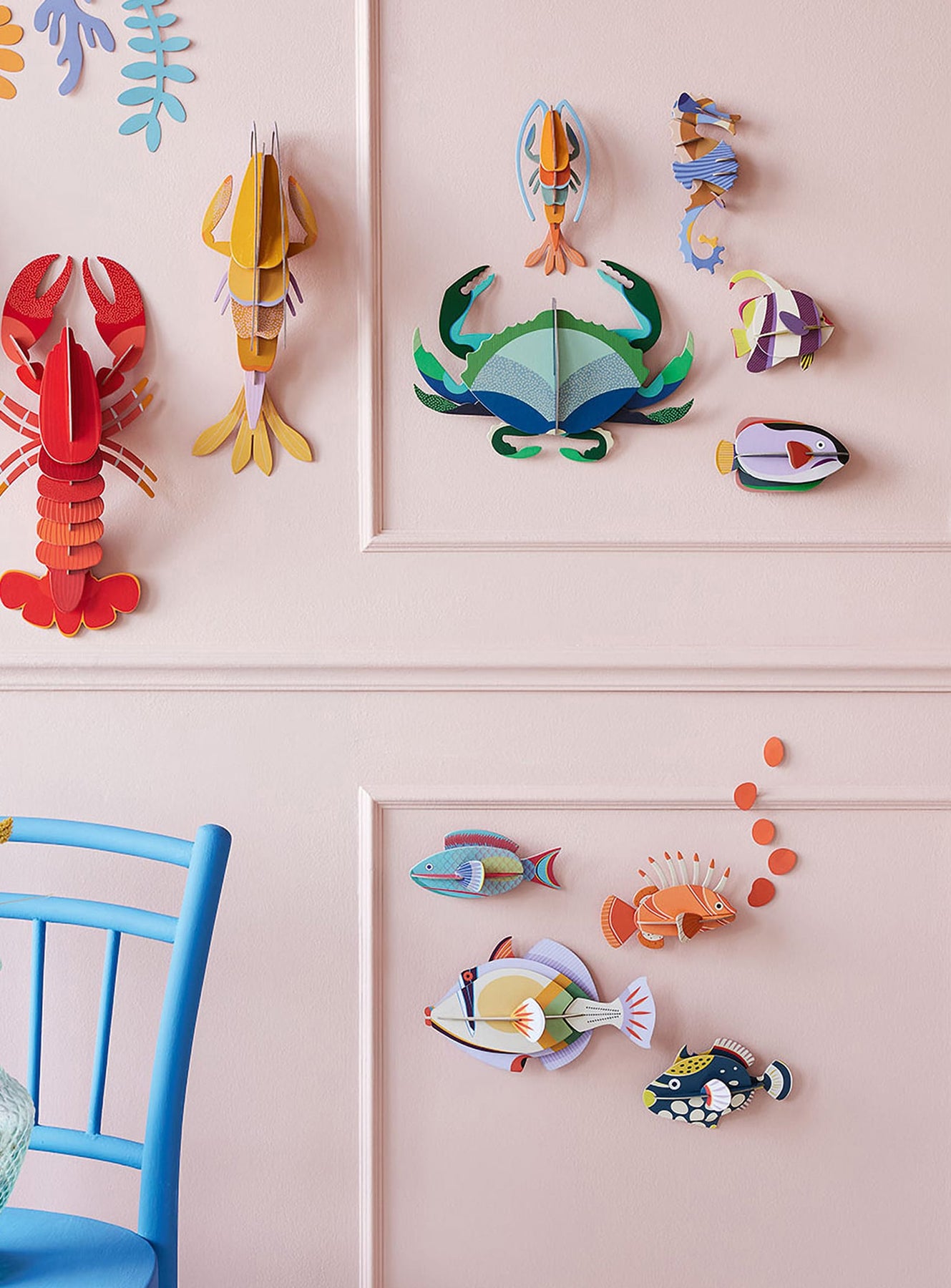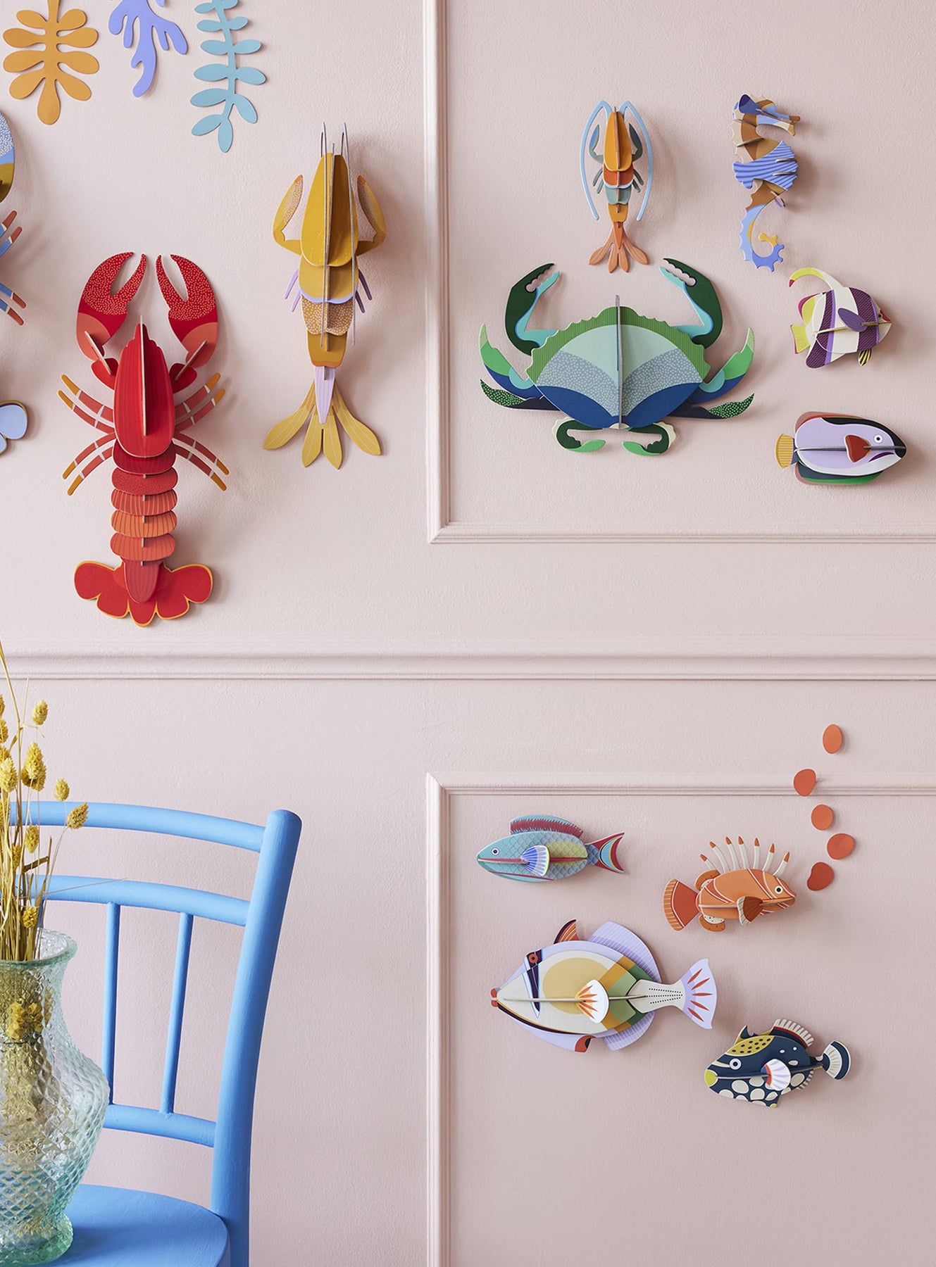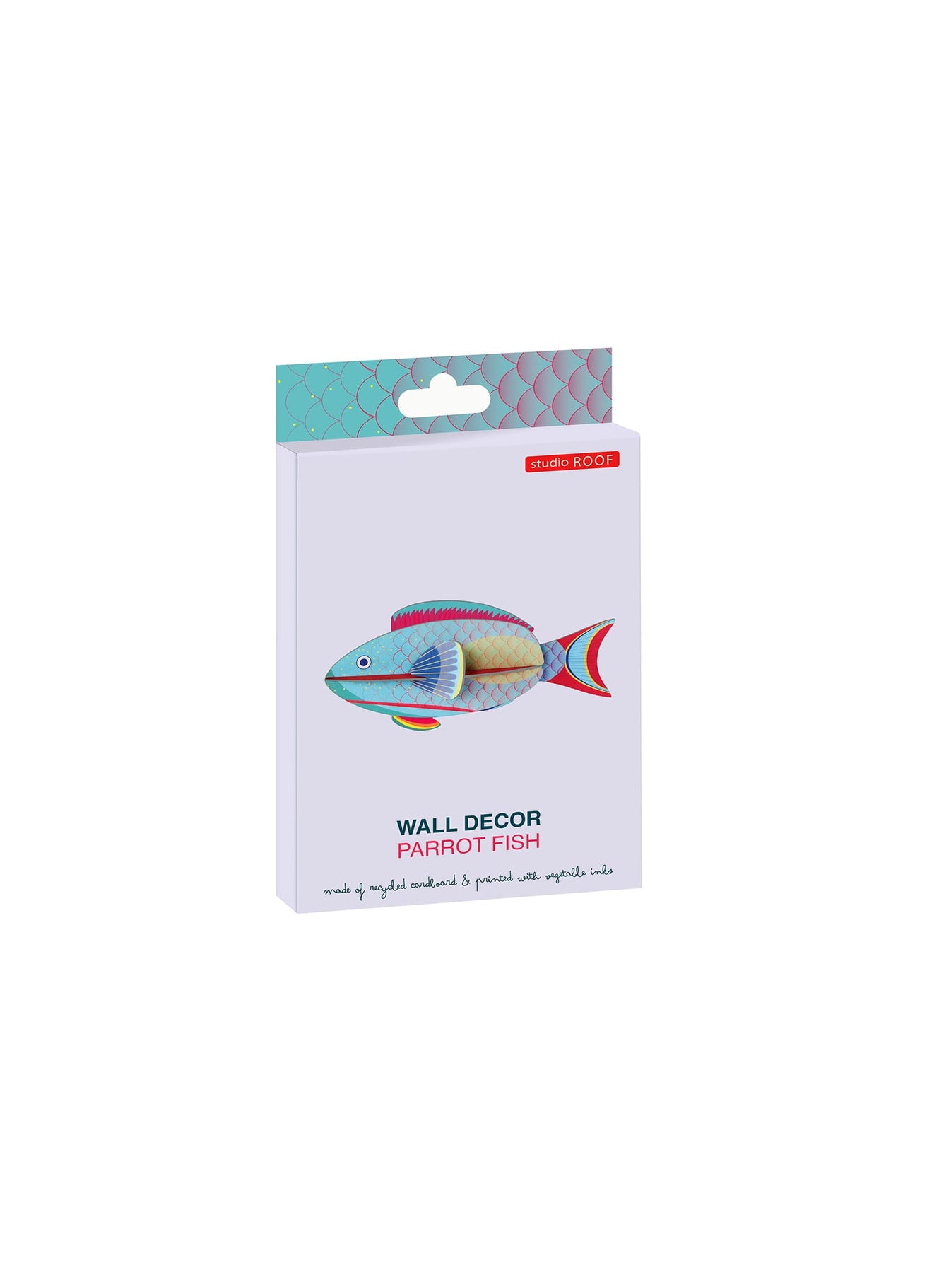The Parrotfish by Studio ROOF brings the dazzling colors and movement of the ocean into your home. Crafted from recycled cardboard and printed with vegetable-based inks, this eco-friendly wall art celebrates the beauty of marine life with a playful and artistic twist.