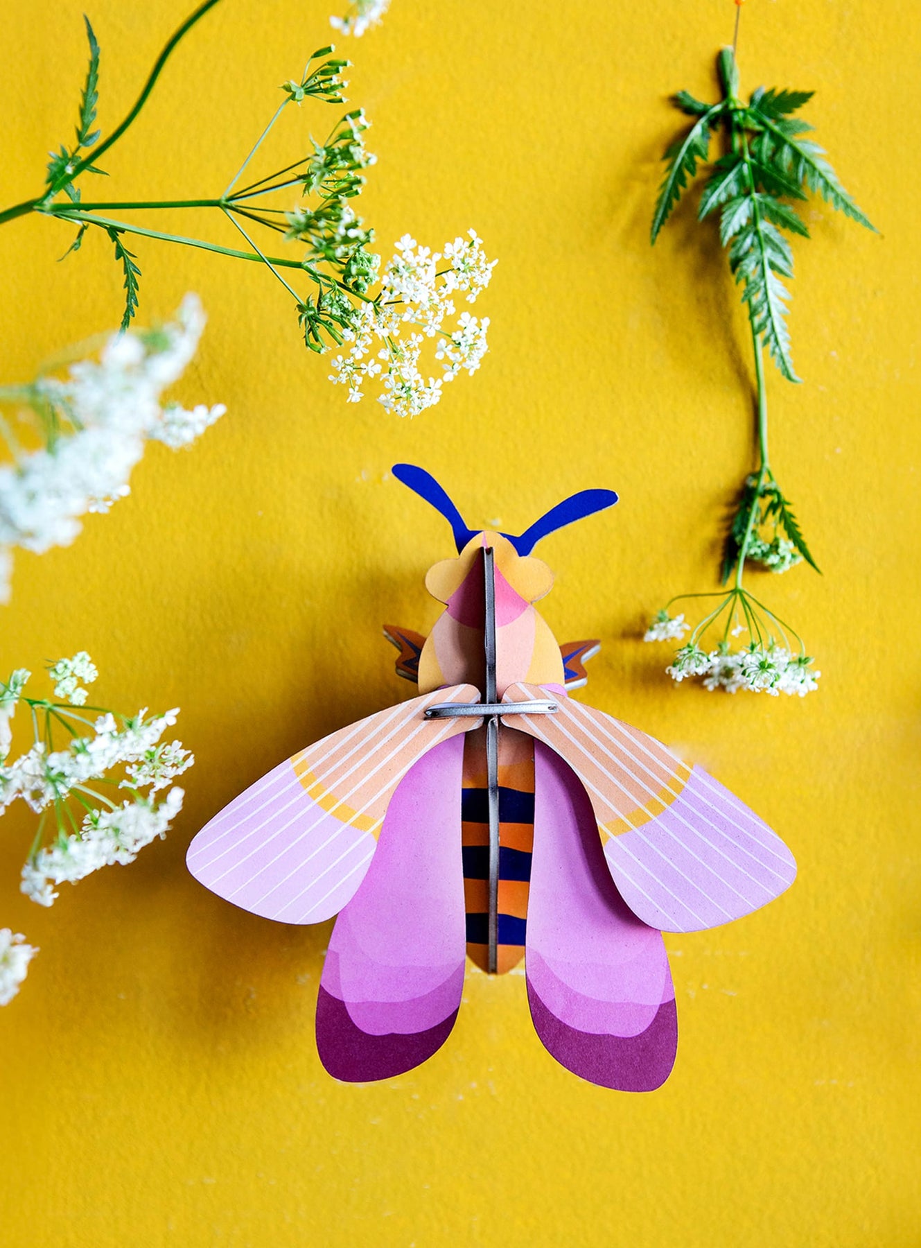 The Pink Bee by Studio ROOF is a stunning 3D wall art piece inspired by the beauty and importance of pollinators. Crafted from recycled cardboard and printed with vegetable inks, this sustainable creation adds a playful burst of color and creativity to your home.