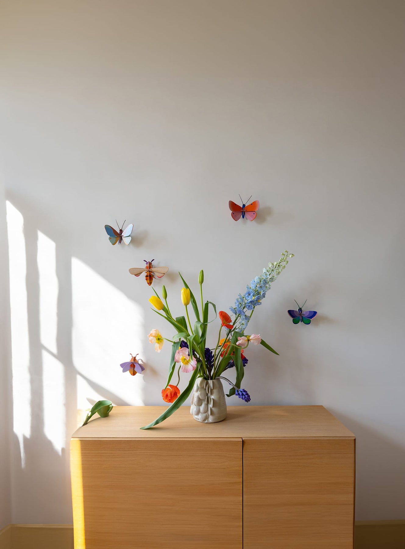 The Pink Dragonfly by Studio ROOF captures the magic of nature in motion, with wings that glimmer like glass in the sunlight. Inspired by the elegance of a dragonfly dancing above water, this piece brings a sense of serenity and wonder to your interior. Its soft pink tones and fluid lines make it a poetic, eye-catching decoration for walls or creative spaces.